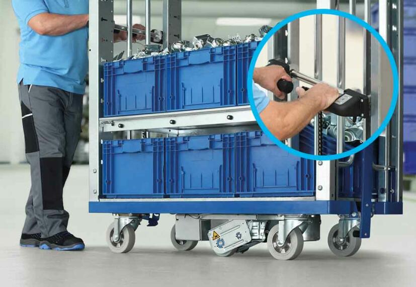 El E-DRIVE Twin de TENTE es un sistema de tracción eléctrica diseñado para mover fácilmente carros y equipos industriales sin esfuerzo físico. Su motor integrado convierte un carro manual en un sistema motorizado inteligente, garantizando un desplazamiento suave, seguro y controlado incluso con cargas pesadas.